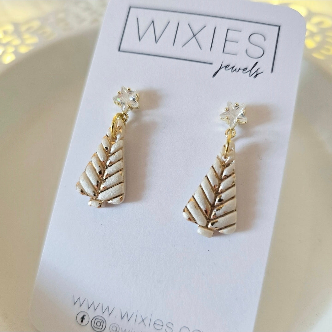 The pear finish and gold foil accents on these trees are so pretty! Topped with a cubic zirconia star gem.