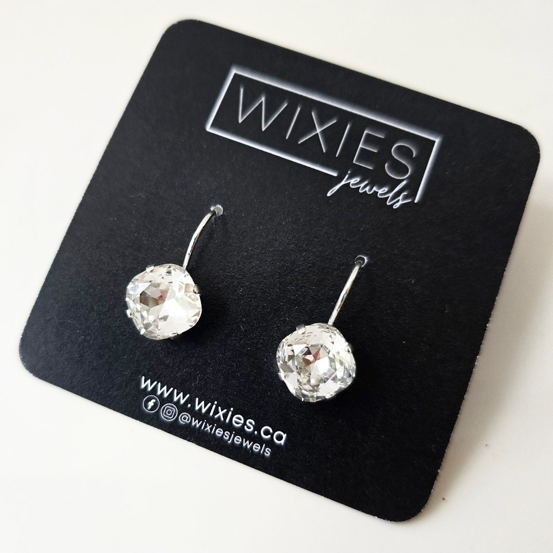These 10mm cushion cut gems are set in silver plated brass that is nickel free.