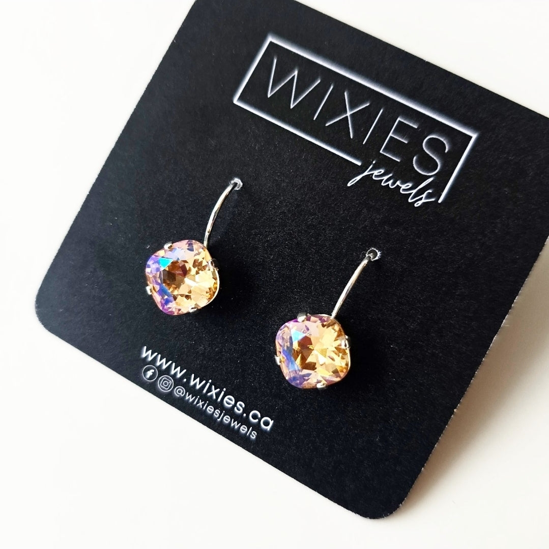 Gorgeous multi-colour reflections in a warm peachy tone make these 10mm glass gems the most perfect peach colour to wear this fall... or all year!